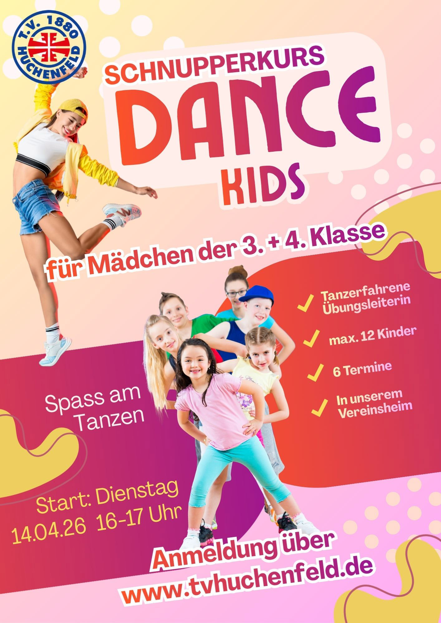 Der Kurs wird von einer tanzerfahrenen Übungsleiterin geleitet und findet in kleinen Gruppen mit maximal 12 Kindern statt – so ist eine individuelle Betreuung garantiert.