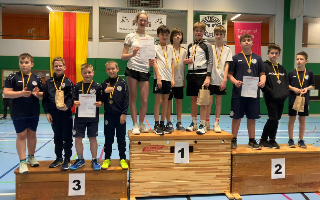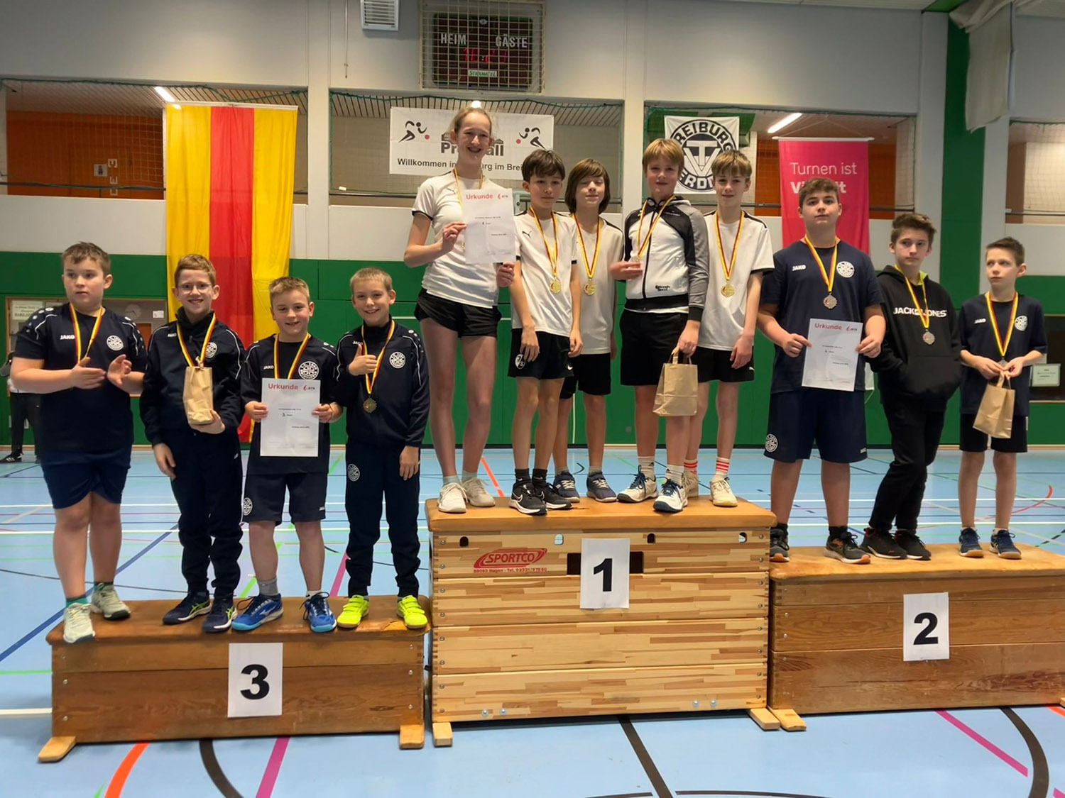 Bei den Schülern traten zwei Mannschaften vom TVH an. Mannschaft eins mit Tyler Nikolaus, Colin Mai und Elias Homberg erreichten mit nur einer Niederlage die badische Silbermedaille. TVH 2 mit Nils Meier, Fredrik Johannsen, Silas Nikolaus und Jannes Riexinger mussten neben der Niederlage gegen die eigene Vereinsmannschaft, eine weitere gegen TV Herdern 1 einstecken. Alle weiteren Spiele entschieden sie für sich und landeten auf dem Bronze- Treppchen.