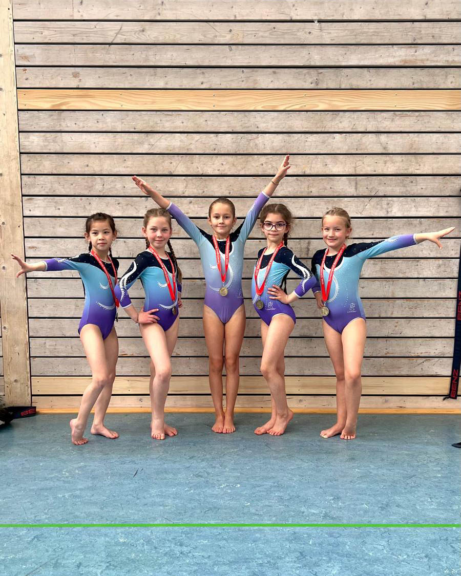 Bei den jüngsten Turnerinnen in der Altersklasse 8-9 Jahre erturnten sich Lucy, Tila, Amalia, Faye und Alisa einen tollen 3. Platz.