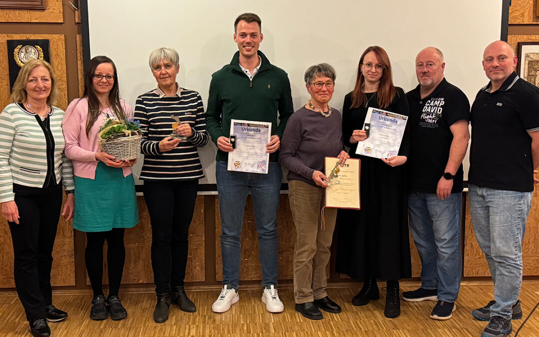 Bei der Mitgliederversammlung des TVH am 27.3.2026 verlieh der stellvertretende Turngauvorsitzende Jörg Hasenauer zwei langjährig engagierten TVH-Übungsleiterinnen die Goldene Verdienstplakette des Badischen Turner-Bundes. Diese hohe Auszeichnung das Fachverbandes wird an Personen mit besonderen Verdiensten im Turnsport vergeben.
